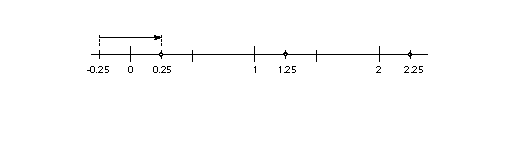 Since only four bits are available to store the exception size, the magnitude of the change made to the point location is remapped before it is stored in the exception specification. The table below maps the number of steps in the exception to the number that should be stored as the second part of argi.