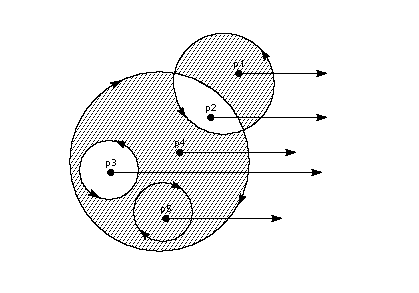• Points p3 and p5 illustrate the importance of properly setting curve directions. Point p3 undergoes an on-transition followed by an off-transition, has zero winding number. It is an exterior point.