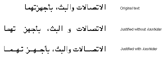 The following figure shows how the use of kashidas can affect the appearance of a line: