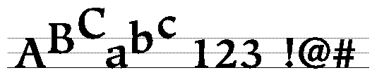The baselineof a glyph is a line that defines the position of the glyph with respect to other glyphs. The importance of the baseline is illustrated when different size glyphs are used; in this case the baseline represents a stable place from which glyphs rise and descend proportionally. The following figure shows the common baseline for Roman glyphs: