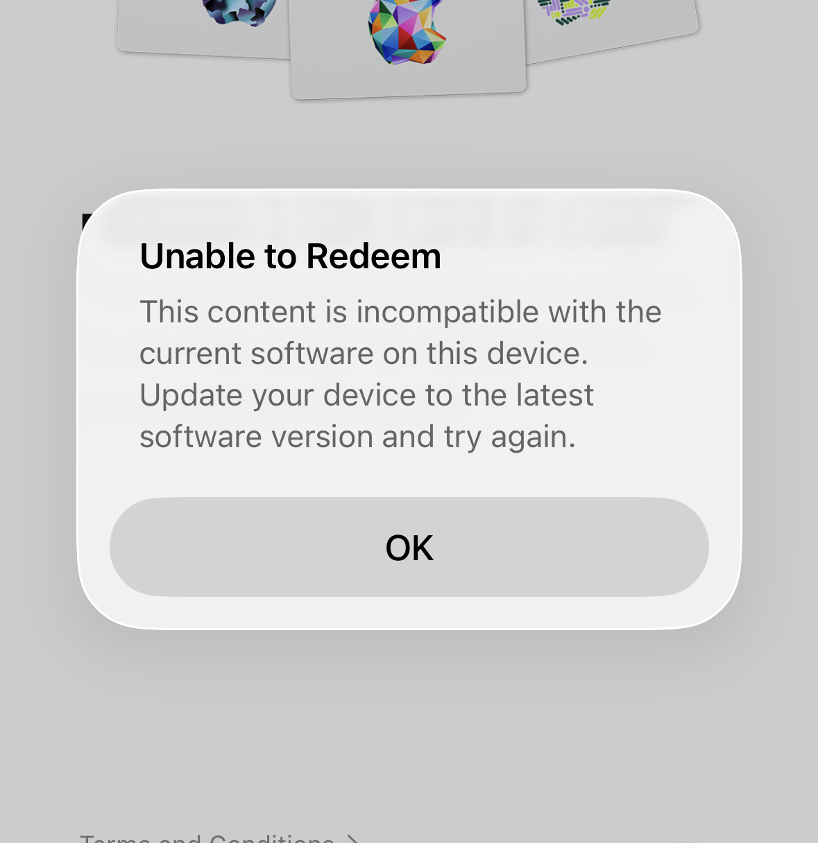 As part of my release checks, I like to download the app store release using a promo code. On both iOS and macOS, redeeming a promo code for the respective builds gives the error you see in the screenshot: