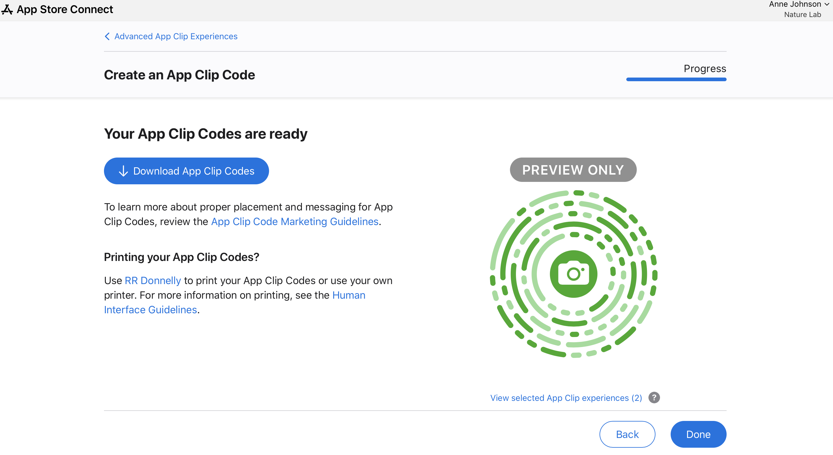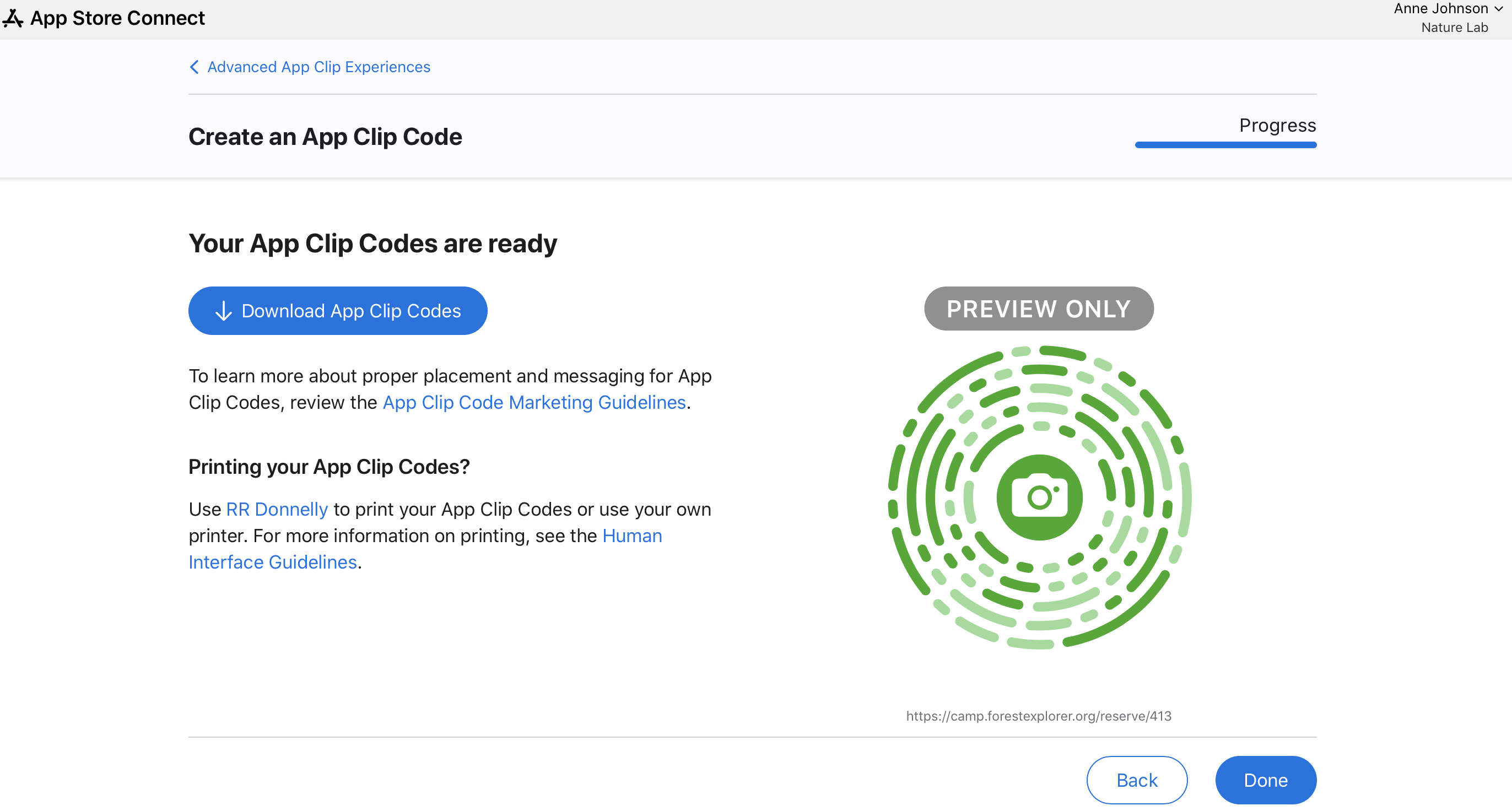 11. Click Download App Clip Codes to download SVG files.