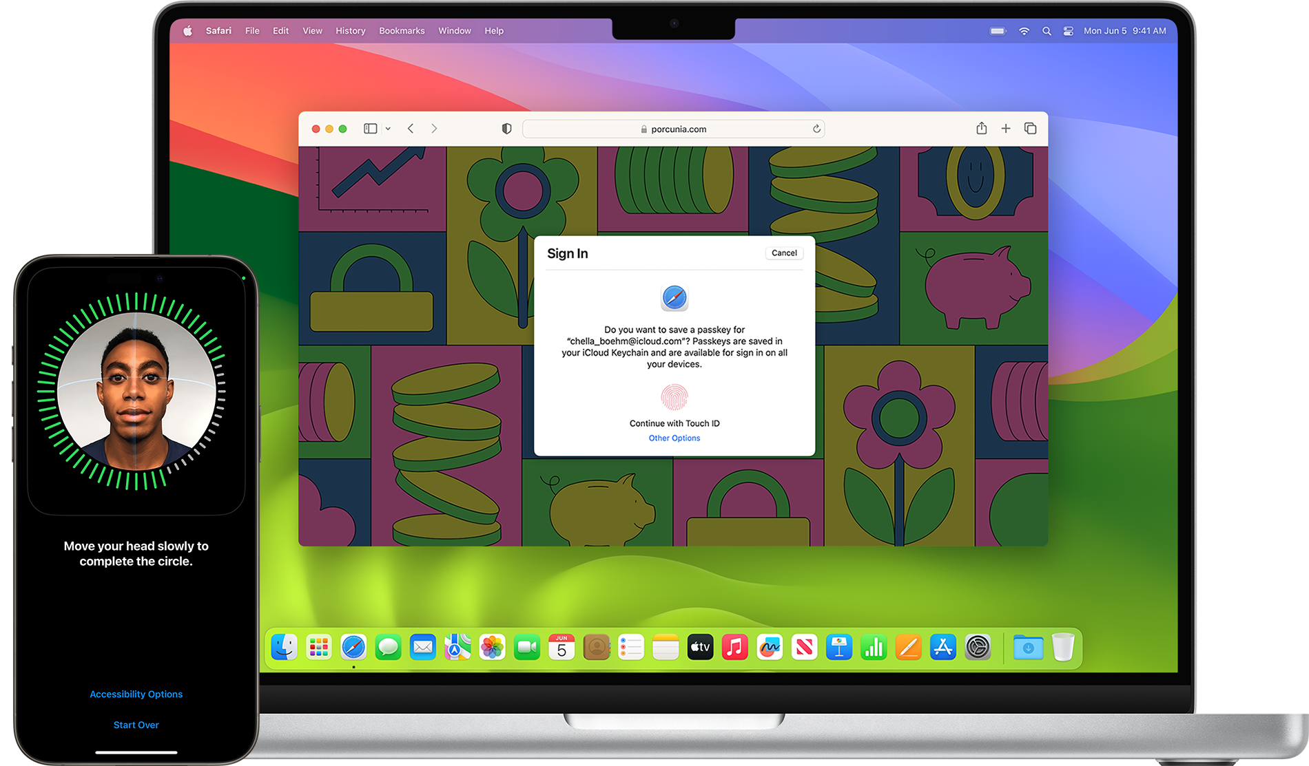 사용자는 Apple 계정을 이용하여 앱 및 웹 사이트에 손쉽게 로그인할 수 있습니다. 사용자는 양식을 작성하고 이메일 주소를 확인한 뒤 새로운 암호를 생성하는 절차를 거칠 필요 없이 Apple로 로그인을 사용하여 계정을 설정하고 곧바로 앱을 사용할 수 있습니다.