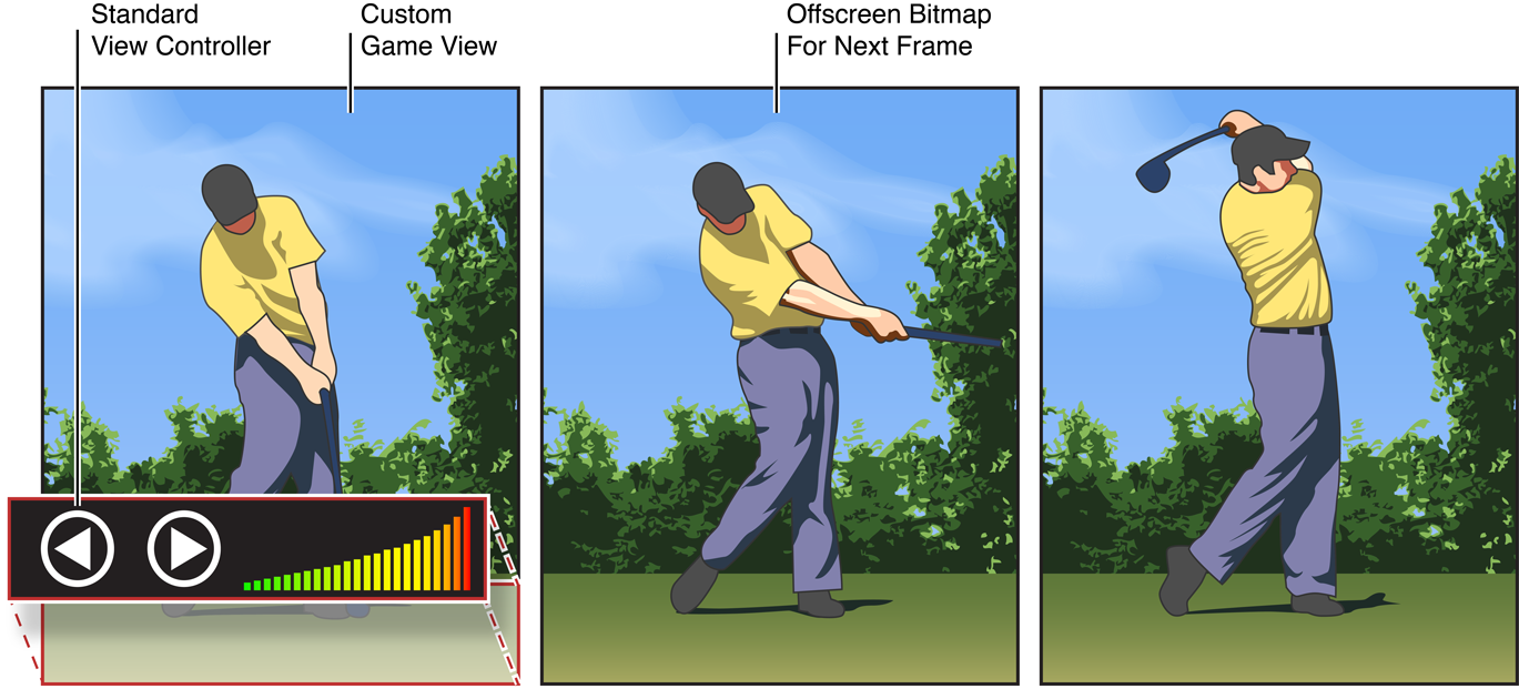 On the other hand, if the bulk of your app’s interface is fixed, you can render the interface in advance to one or more image files and display those images at runtime using the UIImageView class. You can layer image views with other content as needed to build your interface. You can also use the UILabel class to display configurable text and include buttons or other controls to provide interactivity. For example, an electronic version of a board game can often be created with little or no custom drawing code.