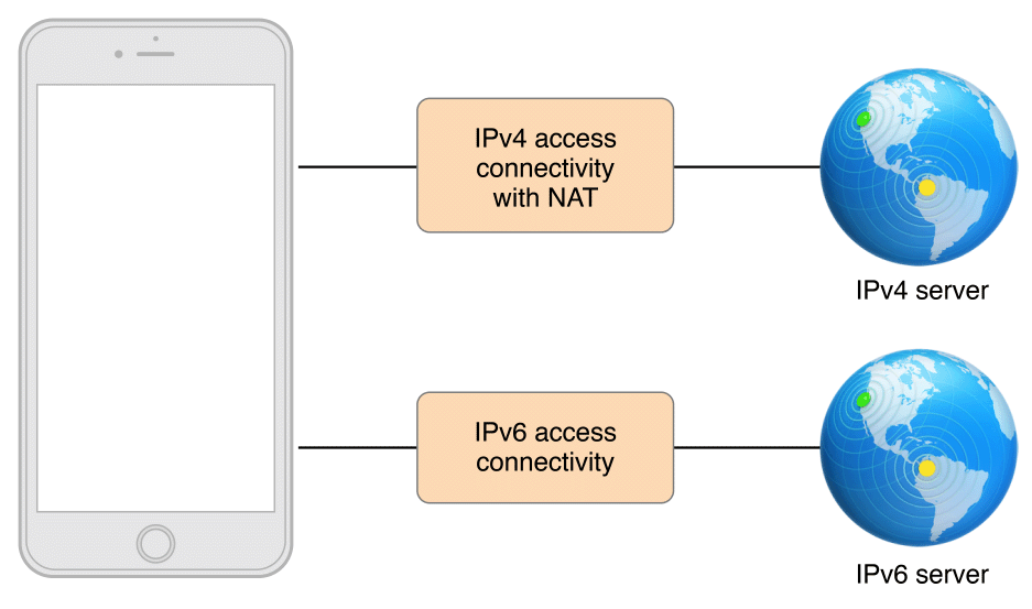 With IPv4 address pool exhaustion imminent, enterprise and cellular providers are increasingly deploying IPv6 DNS64 and NAT64 networks. A DNS64/NAT64 network is an IPv6-only network that continues to provide access to IPv4 content through translation. Depending on the nature of your app, the transition has different implications: