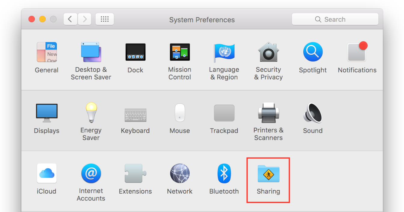 3. Press the Option key and click Sharing. Don’t release the Option key yet.
