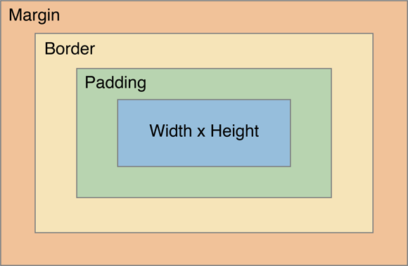 The Box Model provides an easy way to visualize the dimensions of an element at a glance. From the center out, it shows the width and height, padding, border, and margin of the selected node. All of the values are editable; double-click and type in a value to see the change update immediately. As in the Rules tab, you can hold the Option key while pressing the up- or down-arrow keys to increment or decrement the current value.