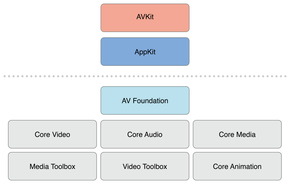 AVFoundation is one of several frameworks that you can use to play and create time-based audiovisual media. It provides an Objective-C interface you use to work on a detailed level with time-based audiovisual data. For example, you can use it to examine, create, edit, or reencode media files. You can also get input streams from devices and manipulate video during realtime capture and playback. Figure I-1 shows the architecture on iOS.
