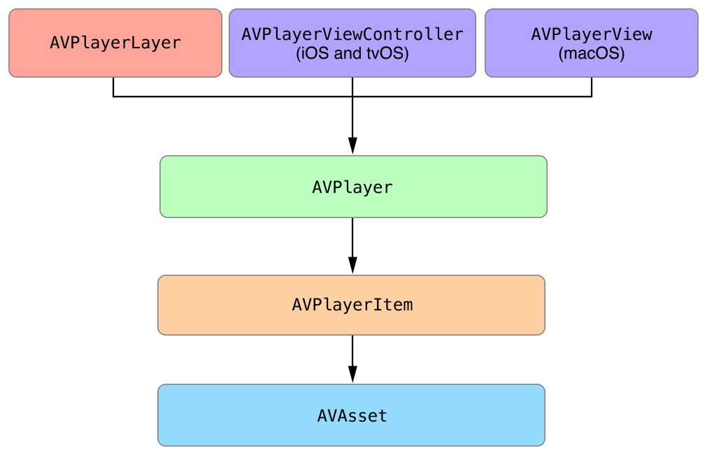 The following example shows the steps you take to create the complete object graph for a playback scenario. The example is written for iOS and tvOS, but the same basic steps apply to macOS as well.