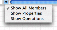 You can also choose which properties are shown by clicking the “v” button to the left of the horizontal scroll bar in the property table. This again displays a pop-up list that you can use to toggle the visibility of properties and operations, as shown in Figure 10-8.