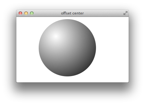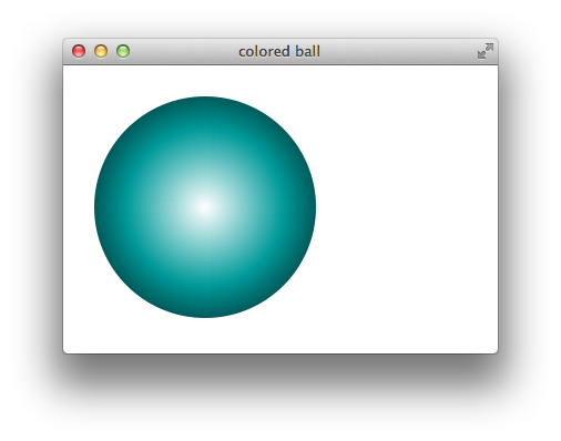 To create a multi-colored radial gradient, specify intermediate colors between the starting and ending color. For example, the following snippet creates a radial gradient that blends from white at the center to green half way out, to black at the outer edge, as Figure 1-11 illustrates:
