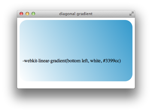 To create a gradient, specify a starting color and an ending color, and optionally intermediate colors and a direction. Safari supports two types of CSS gradients: linear and radial. This chapter describes both types of gradients. Safari 5.1 on the desktop and Safari on iOS 5.0 use the -webkit- prefix for specifying gradients, but otherwise conform to the 17 February 2011 working draft for CSS3 gradients: http://dev.w3.org/csswg/css3-images/.