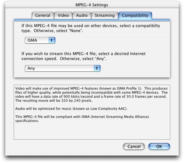 QuickTime 6 also supports use of the MPEG-4 video and AAC audio codecs in QuickTime movies. In many cases, you can choose to create either a native